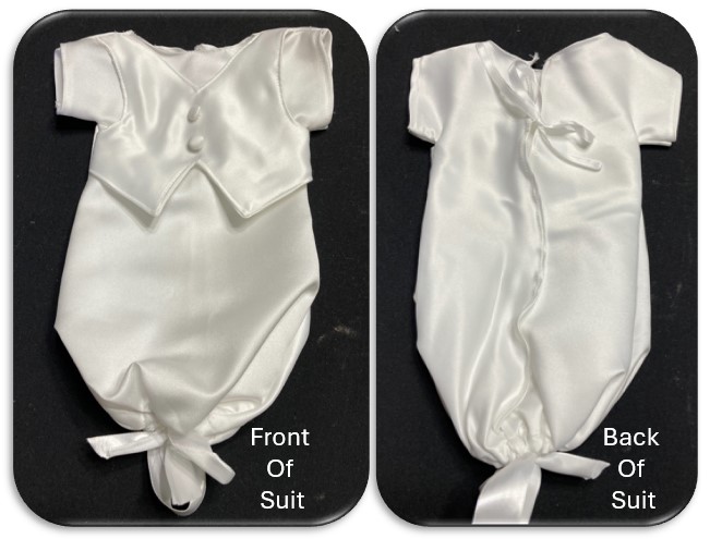 Angel suits are traditionally associated with male babies as a symbol of innocence and purity. These delicate garments are available in Micro-Preemie, Preemie, and newborn sizes, catering to the needs of families during such precious early stages of life. Please read specific notes about patterns below.